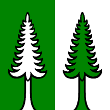 Per pale Vert and Argent two larche trees issuant from the base counterchanged.