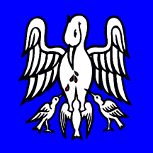 Azure a pelican in her piety argent voulned gules.