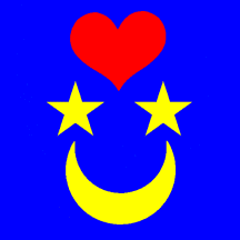 Azure, a Heart Gules above two Mullets (of five) Or above a Crescent of the last.