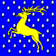 pals d'or, au tilleul arraché au naturel brochant sur le palé, le tout surmonté d'un cerf