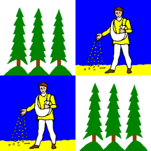 the same trunked proper and Azure stantant on ground Or a man proper clad of the same troused Argent holding a bag of the same sowing seeds Or from it.