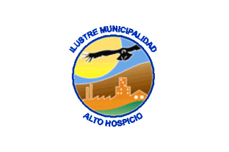 At the official website, you can see the mayor near a white flag with a modern seal and blue letters around it. At the bottom you can read Alto Hospicio, and one can can guess that at the top is written "Ilustre municipalidad."