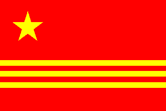 Designed jointly designed by Zhang Ding and Zhong Ling. The red flag with red star surrounded by yellow wreath and three yellow stars beneath in blue canton.