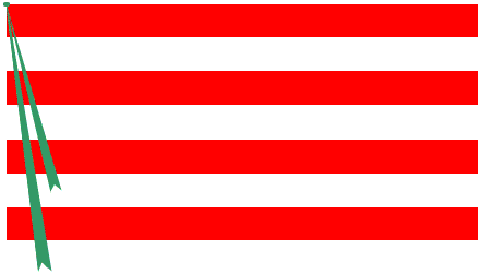 "La forman ocho barras horizontales en las que alternan el rojo y el blanco. El asta termina en lanza y en la moharra levva una cinta verde.