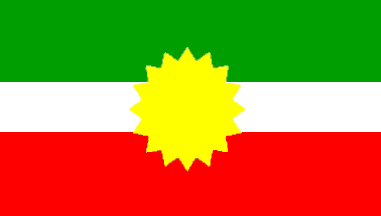 The flag of San Sebastián is horizontally divided green-white-red (inner ratio 2:1:2) and charged with desined sun.