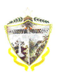 The coat of arms seems to show three different kinds of landscapes. The years 1857 and 1957 are placed in the upper left and right part of the shield, respectively. The yellow ribbon below the shield bears the writing JAGUEY (left) GRANDE (right). The shield is surmonted by two branches and a white star.