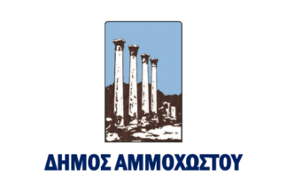 The flag of the municipality in exile of Famagusta (photo, photo) is white with the municipality's emblem in the center and name, in Greek, in base.