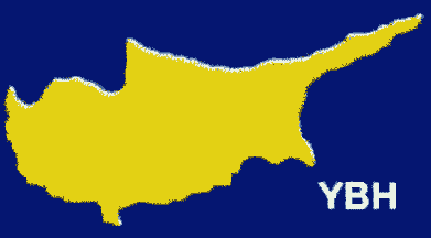 The flag of YBH showed a golden yellow map of Cyprus on a blue field, with the white letters "YBH" in the lower fly.
