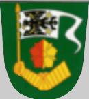 coat of arms: "V zeleném štítě zlaté obrněné rameno držící na zlaté žerdi