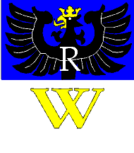 Homepage: with Coat of Arms: per fess azure a black eagle demidiated per fess, crowned, beaked and tonged or; a white "R" on its breast; argent a "W" or.