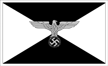A square flag with the field diagonally divided into four fields, top and bottom black, left and right white. Superimposed at the center a silver party eagle (with wreath and swastika). The flag was reported to have a silver border.