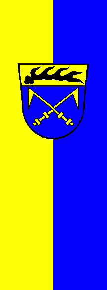 It is a yellow-blue vertical bicolour. The coat of arms is shifted to the top.