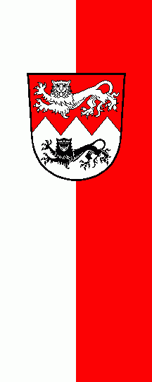 It is a white-red vertical bicolour. The coat of arms is shifted to the top.