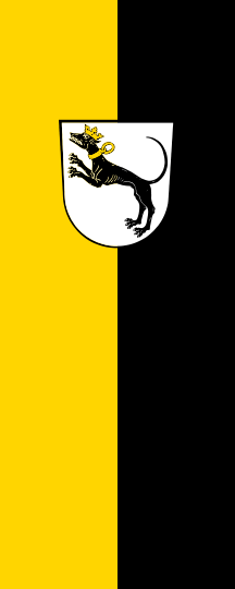 It is a black-yellow vertical bicolour. The coat of arms is shifted to the top.