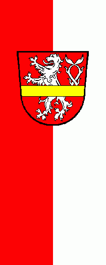 It is a red-white vertical bicolour. The coat of arms is shifted to the top.