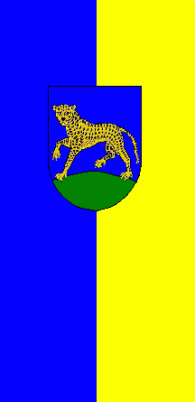 It is a blue-yellow vertical bicolour. The coat of arms is shifted to the top.