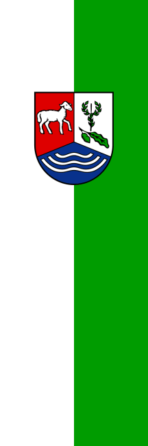 It is a green-white vertical bicolour with coat of arms shifted to the top.
