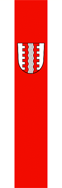 It is white-red-white banner divided 1:2:1 with coat of arms shifted to the top.