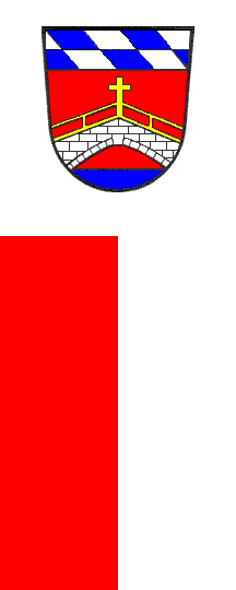 It is red-white vertical bicolour with the arms in a white bannerhead.