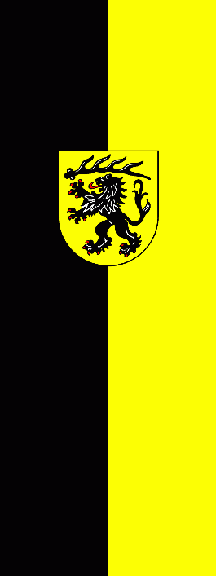 It is a black-yellow vertical bicolour. The coat of arms is shifted to the top.