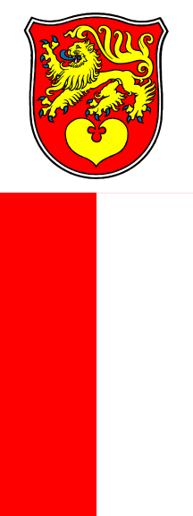 It is a red-white vertical bicolour. The coat of arms is in the white bannerhead.