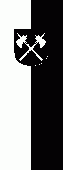 It is a white-black vertical bicolour. The coat of arms is shifted to the top.