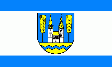 The church is representing the local collegiate church. The ears are symbolising agriculture as important business line. Their 12 grains are referring to the 12 former municipalities of the city. The fess wavy is representing the Elbe River.