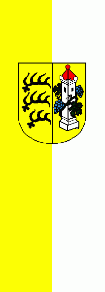 It is a yellow - white vertical bicolour. The coat of arms is shifted to the top. The reverse is white - yellow with the coat of arms in proper order.