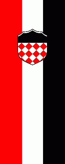 It is a red-white-black vertical tricolour. The coat of arms is shifted to the top.