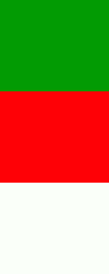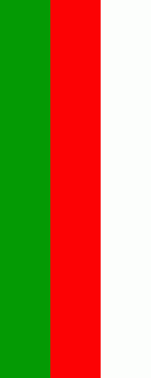 It is a green-red- hite vertical tricolour, which exists with vertical stripes (see left image above) and horizontal stripes (see right image above)