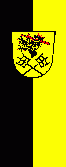 It is a black-yellow vertical bicolour. The coat of arms is shifted towards the top.