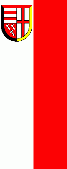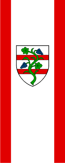It is a white-red vertical bicolour. The coat of arms is in the canton on the white stripe.
