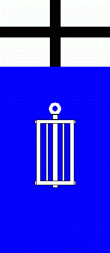 It is a blue over yellow horizontal bicolour with centred arms.
