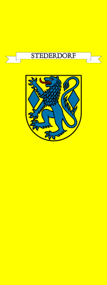 It is a plain yellow sheet. The coat of arms is shifted to the top. Above the shield is a white scroll with inscription in black serifed initials "STEDERDORF".