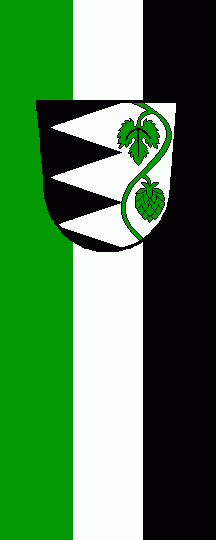 The partition per pale wavy is taken from the family arms of the Lords of Rohrbach, known from their seals. They had been commissionaires of the Wittelsbach kin, were first mentioned in the 11th century and had been local rulers for more than 500 years. Their arms were adopted by their successors, the Barons of Koch, who especially promoted the local agriculture. The twig is symbolising the cultivation of Hops in the Hallertau area, Germany's biggest area for the cultivation of hops.