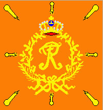 16th Regiment: * Distinctive colour orange, flames of the inversed background colour, gold as metal. Was granted its flag with the cypher of Frederic II in 1742. Since 1713, the distinctive colour has been orange, flames of the inversed background colour, gold as metal.