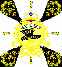 1st company: Colonel's Colour (Leibfahne) ratio: approx 19:18 colour of sheet and scroll: white colour of mirror: yellow colour of ornaments: golden additional elements: black wedges wavy |