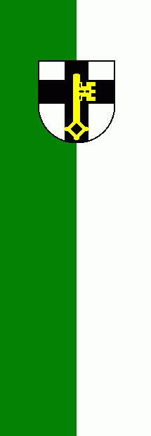 It is a green - white vertical bicolour. The coat of arms is shifted to the top.