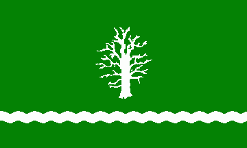Shield Vert, an eradicated oak Argent, in base a barrulet wavy Argent.