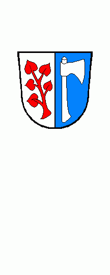 Shield parted per pale, at dexter Argent a linden branch Gules with five leaves in bend, at sinister Azure an axe Argent in pale pointing to flanch.