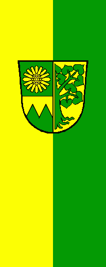 It is a green-yellow vertical bicolour. The coat of arms is shifted towards the top.