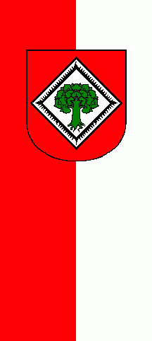 In a red shield is a silver (= white) diamond. In its centre is a green linden tree. The diamond has a black tressure being flamy outward bound.