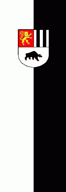 It is a white - black vertical bicolour. The coat of arms is shifted to the top.