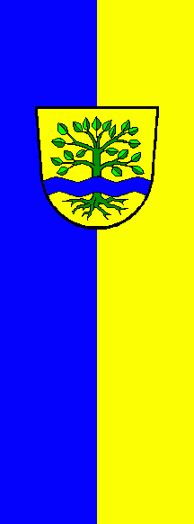 It is a blue-yellow vertical bicolour. The coat of arms is shifted to the top.