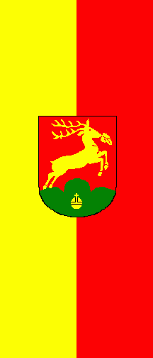 It is a red - yellow vertical bicolour. The coat of is in a white bannerhead.
