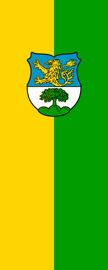 It is a yellow-green vertical bicolour. The coat of arms is shifted towards the top.