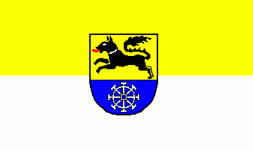 The tower is that one of the local church of St.John, erected in 1643. The inescutcheon shows the coat of arms of the Welfen kin. The flag was granted in 1929, accompanied by the words: "Welfen?s loyalty surrounded by the love of their Lower Saxonians", for yellow was the colour of the Welfen kin and red the colour of the Lower Saxonians.