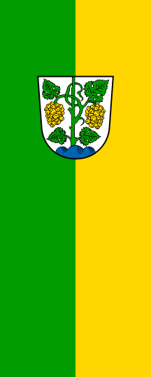 It is a green-yellow vertical bicolour. The coat of arms is shifted to the top.