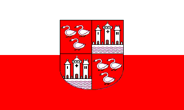 The plain bicolour is in use since 1897. Flag and banner with arms are were introduced in 2000 probably without approval. The arms are traditional and in use since 1560.