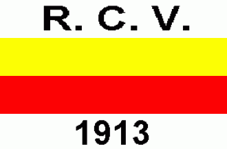 It is a white flag divided horizontally by connected bars of yellow over red. There are black inscriptions "R.C.V." on upper white stripe and "1913" on lower one.